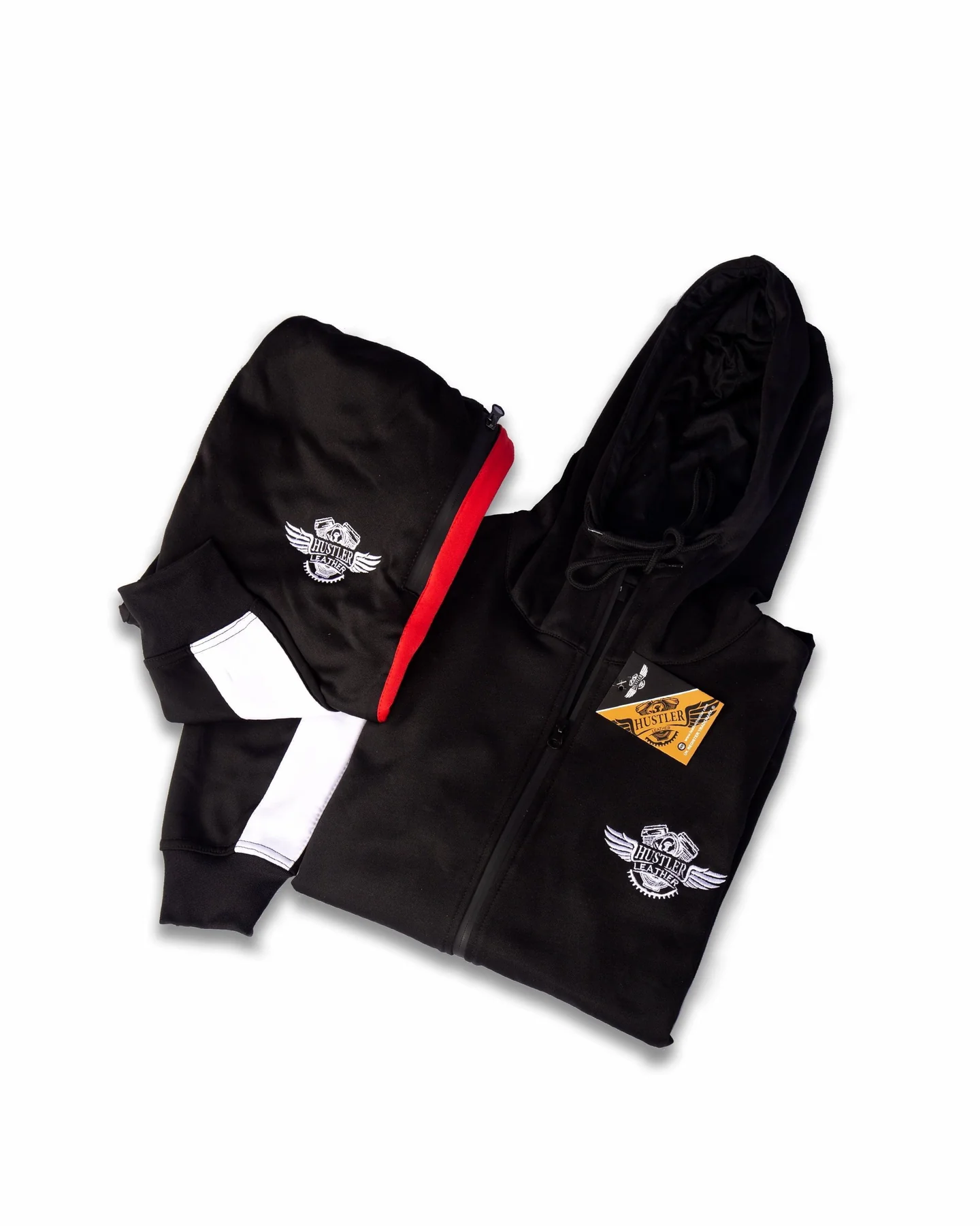 The tracksuit set includes a full-zip sweatshirt and a matching pair of track pants. The hoodie features two kangaroo pockets, a full zip-up front, and long sleeves with elastic ribbed cuffs and hems. The track pants have an internal drawstring and an elastic waistband, giving you the ideal fit and maximum comfort.